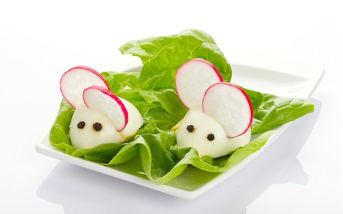 Ba mẹ có thể cùng bé trang trí món rau và hoa quả để nhìn trông thật bắt mắt với trẻ, như tạo hình thú cưng, các nhân vật hoạt hình để kích thích bé ăn nhiều rau hơn.