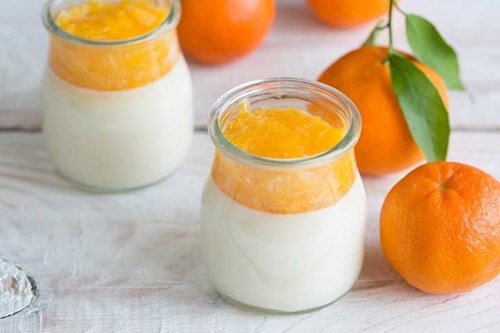 Cho cam vào ly sữa chua, có thể thêm mật ong, nếu muốn