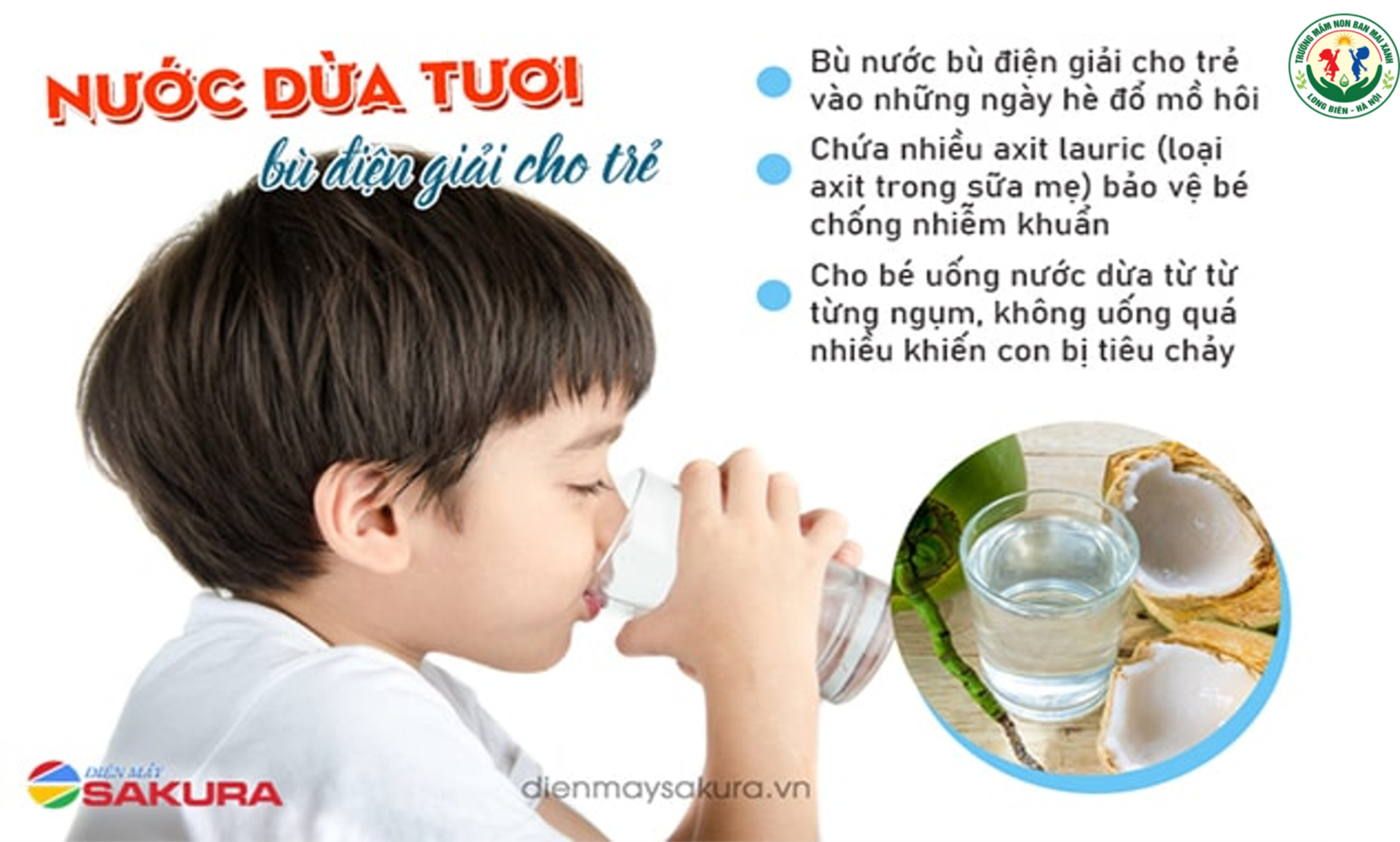 Chất điện giải và lượng vitamin dồi dào trong nước dừa sẽ bù nước nhanh chóng cho trẻ trong những ngày hè đổ mồ hôi nhiều.