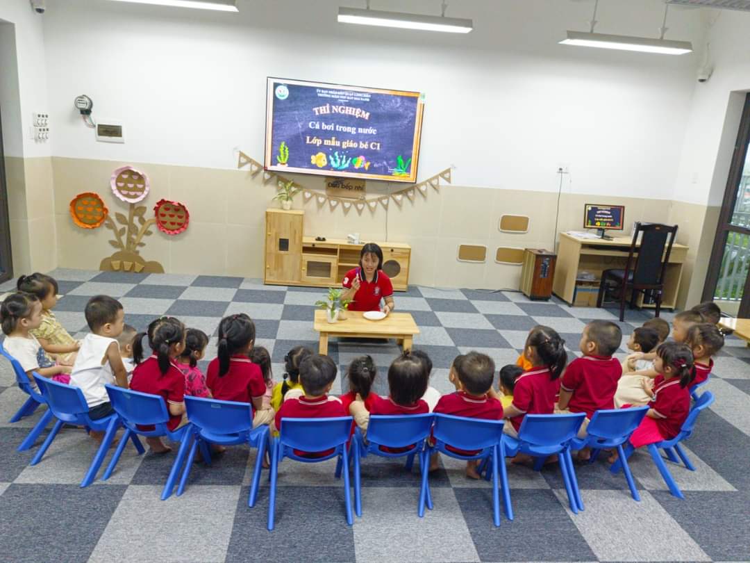 HOẠT ĐỘNG THÍ NGHIỆM “ CÁ BƠI TRONG NƯỚC ” CỦA CÁC BẠN MẪU GIÁO BÉ C1- TRƯỜNG MẦM NON BAN MAI XANH