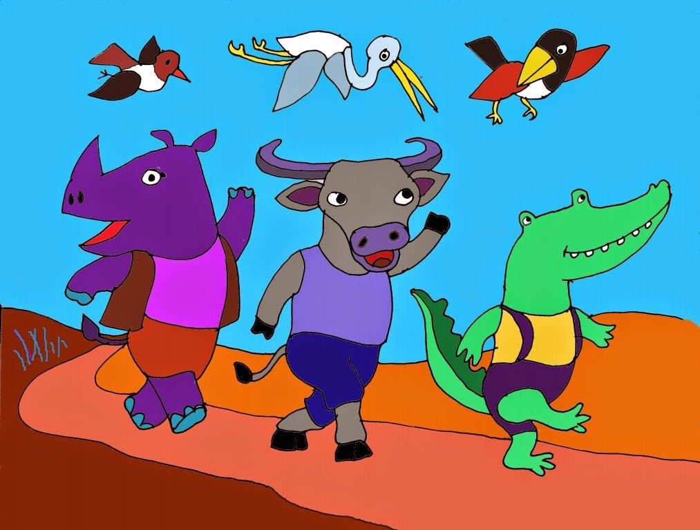 Chim Bắt Ve khám cho Tê Giác thấy có nhiều nếp nhăn gấp trên da, nên bị các con bọ chui vào cắn. Chim Bắt Ve nhảy lên lưng Tê Giác bắt hết bọ, cảm giác đau và ngứa của Tê Giác biến mất. Bắt Ve nói với Tê Giác: