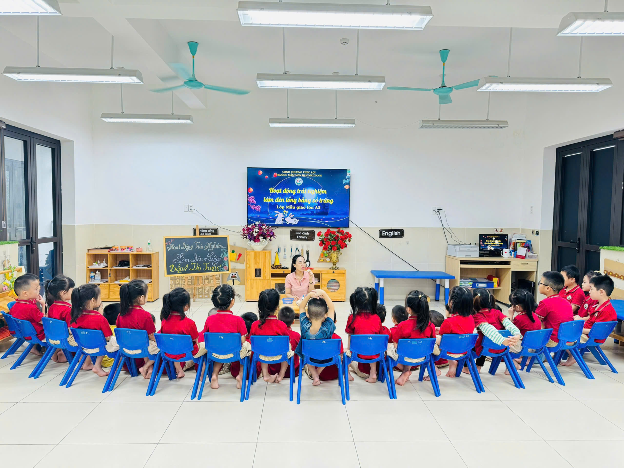 Ngày hôm nay, trong hoạt động trải nghiệm làm đèn lồng bằng vỏ trứng, các bé lớp MGL A5 đã say mê sáng tạo với đôi bàn tay khéo léo. Từng trẻ được tự tay lựa chọn, sắp xếp và trang trí những chiếc vỏ trứng nhiều màu sắc, gắn kết lại thành chiếc đèn lồng độc đáo. Hoạt động không chỉ mang đến cho trẻ niềm vui, sự hào hứng mà còn rèn luyện tính kiên trì, óc thẩm mỹ và khả năng phối hợp khéo léo. Những chiếc đèn lồng nhỏ xinh do chính các bé làm ra đã thắp sáng không gian, đồng thời thắp lên niềm tự hào và sự tự tin trong mỗi bé. Sau đây là 1 số hình ảnh của các bé lớp MGL A5 trng buổi hoạt động làm đèn lồng
