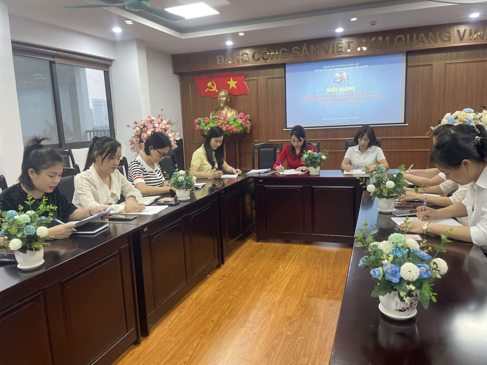 Thực hiện kế hoạch của Đảng ủy phường Phúc Lợi về kiểm điểm, đánh giá, xếp loại chất lượng năm 2023 đối với tổ chức Đảng, đảng viên và tập thể, cá nhân cán bộ lãnh đạo, quản lý. Chiều ngày 29/11/2023, Chi bộ trường Mầm non Ban Mai Xanh tổ chức Hội nghị Kiểm điểm tập thể, cá nhân và đánh giá phân loại chất lượng tổ chức cơ sở Đảng, đảng viên năm 2023 với sự tham gia của 09/09 đảng viên trong chi bộ.