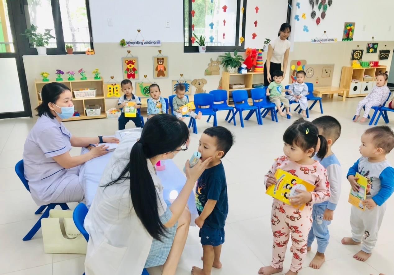 Một số hình ảnh minh họa trong buổi khám sức khỏe định kỳ cho trẻ tại Trường MN BAN MAI XANH