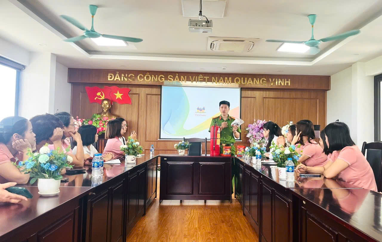 Ngày 22/07/2024 Trường Mầm non Ban mai xanh tổ chức tập huấn công tác phòng cháy chữa cháy cho