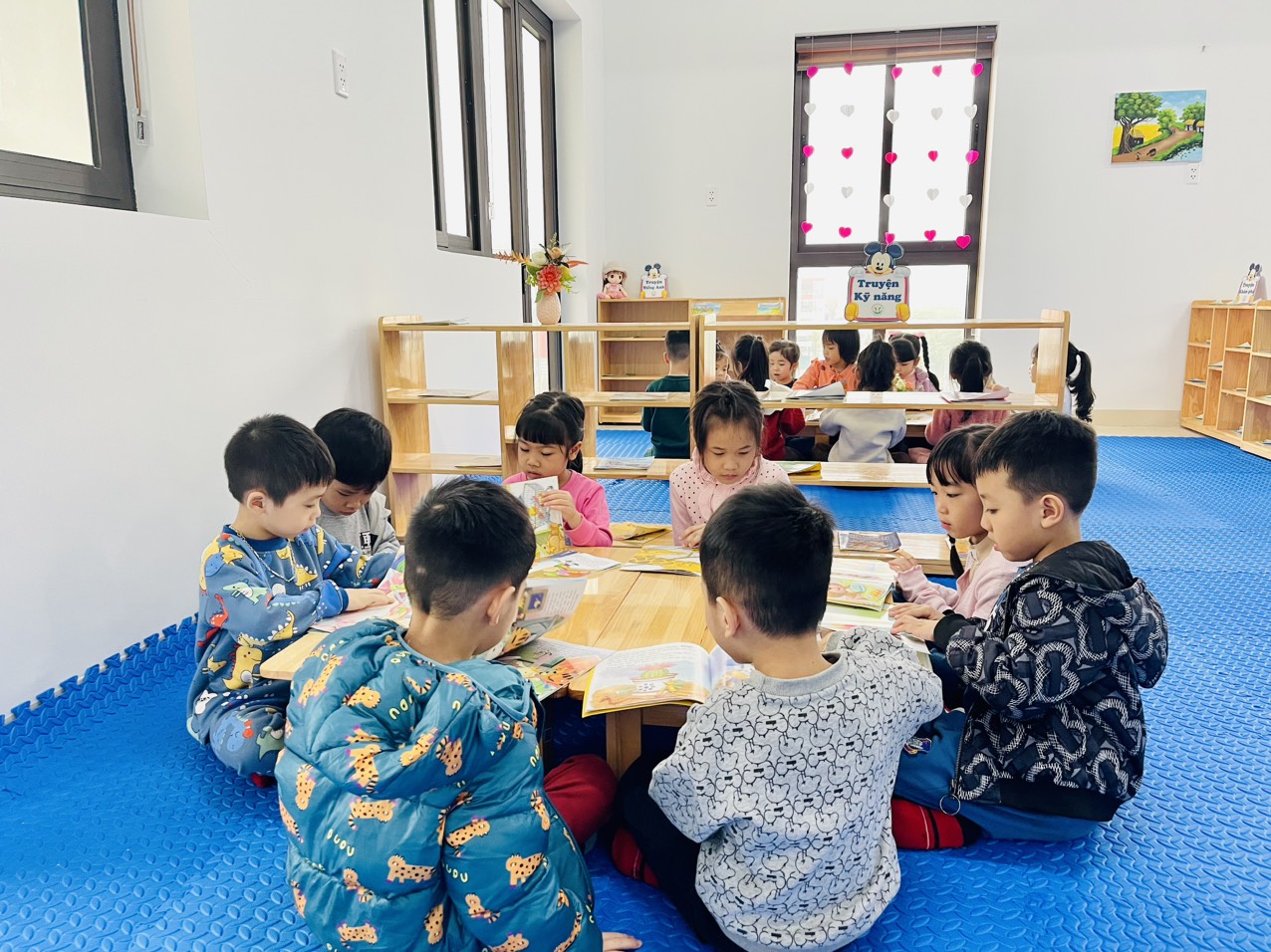 Hưởng ứng kế hoạch tổ chức, triển khai Ngày Sách và Văn hóa đọc năm 2024 của Phòng Giáo dục và Đào tạo Quận Long Biên Trường mầm non Ban Mai Xanh tổ chức “Ngày hội đọc sách của bé” năm 2024 cho trẻ. Mỗi không gian sách được các cô giáo bài trí khoa học, bắt mắt, phong phú đa dạng các loại sách: tranh truyện; truyện tranh 3D; tranh rời, tranh thơ-truyện chữ to, Sách vải thông minh, sân khấu hóa từ sách: rối tay, rối dẹt; …