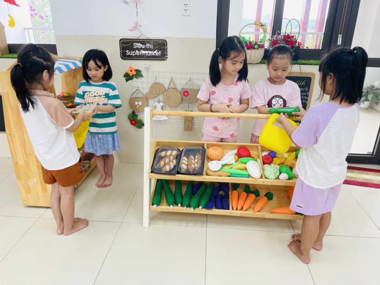 Hoạt động góc là hoạt động quan trọng không thể thiếu trong chế độ sinh hoạt một ngày của bé ở trường mầm non. Trẻ được tham gia vào các hoạt động trải nghiệm và chơi theo nhu cầu hứng thú của trẻ. Tham gia vào hoạt động góc trẻ được chọn vai chơi mà mình yêu thích. Ở mỗi góc chơi, trẻ đều được học những kiến thức, kỹ năng khác nhau và quan trọng hơn cả là trẻ có cơ hội được thể hiện mình và biết phối hợp cùng các bạn tham gia các hoạt động. Sau đây mời các bạn xem một số hình ảnh hoạt động góc của các bạn nhỏ lớp MGL A3