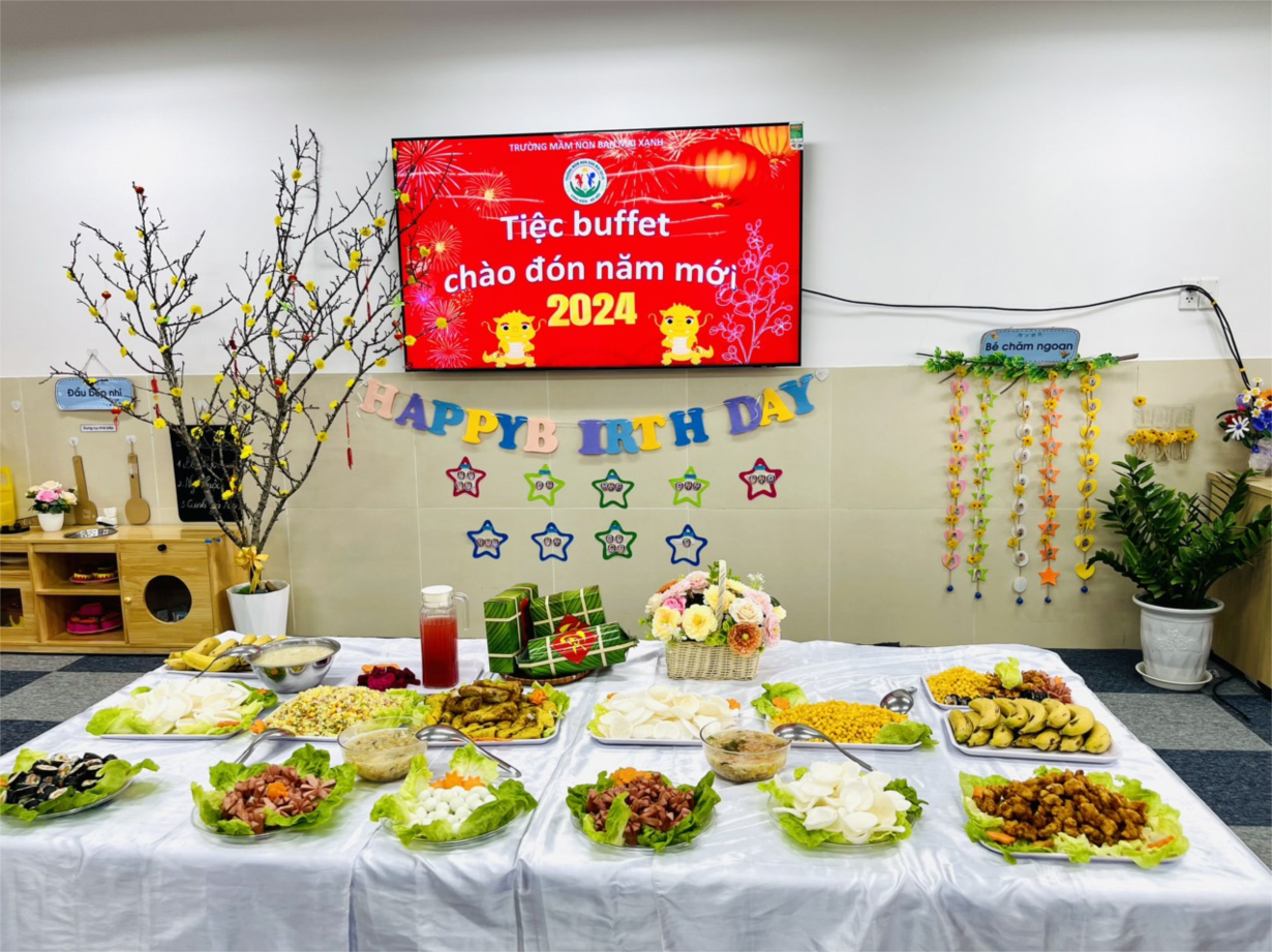 Ăn tiệc buffet là cơ hội giúp trẻ được giao lưu, trao đổi trò chuyện với nhau về món ăn, cách ăn, cách sử dụng đồ ăn, được rèn nề nếp ăn uống văn minh, thói quen tự phục vụ. Việc tự lựa chọn món ăn mình yêu thích giúp trẻ thêm mạnh dạn, tự tin trong giao tiếp và ứng xử. Chúc các bé đón năm mới 2024 có thật nhiều niềm vui và được thưởng thức nhiều bữa tiệc buffet ngon miệng cùng với các bạn thân yêu tại trường Mẫu giáo Mầm non A.