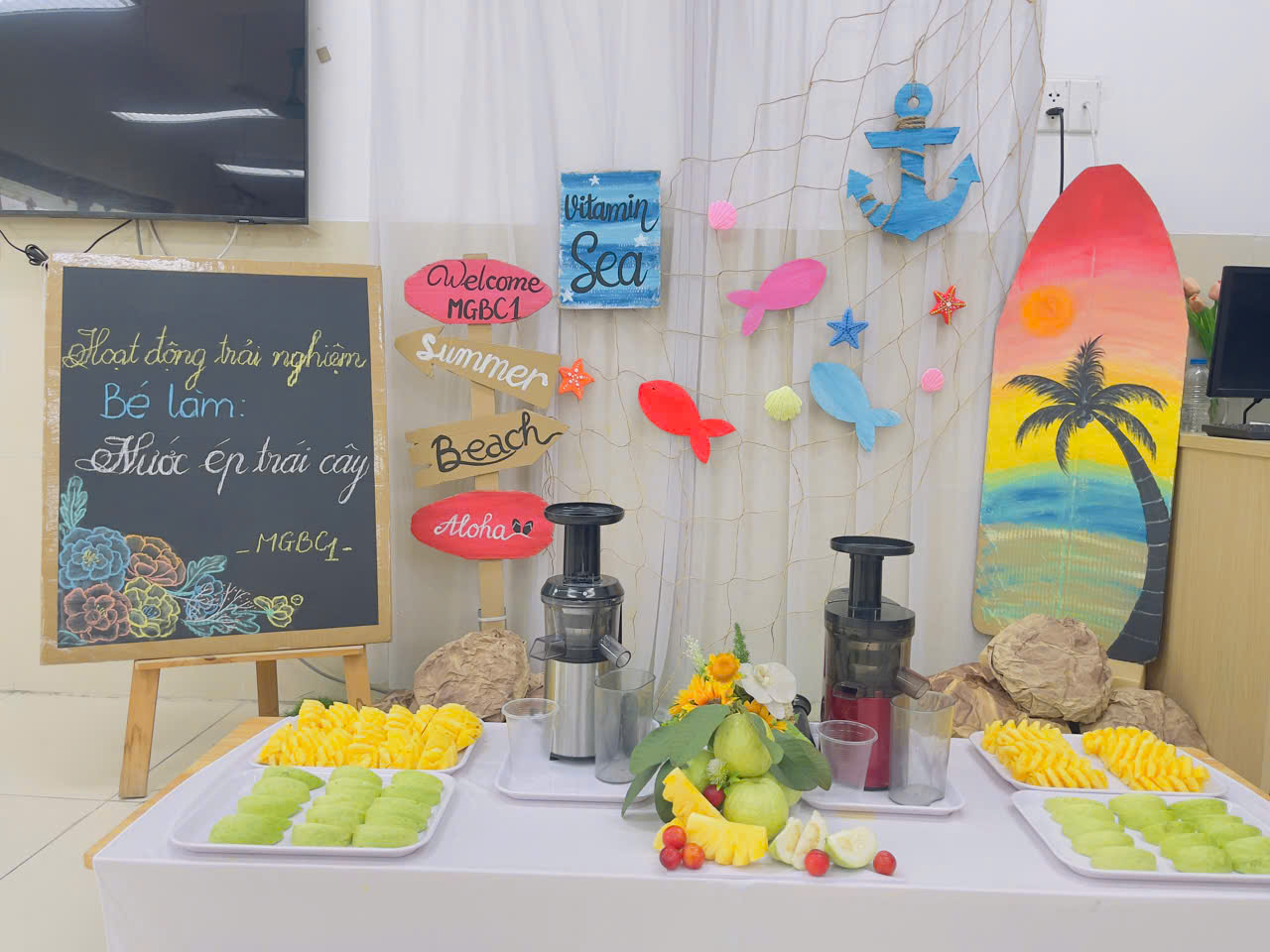 Thành phẩm là những ly nước ép tươi mát, bổ dưỡng và đẹp mắt do chính tay các con làm ra.