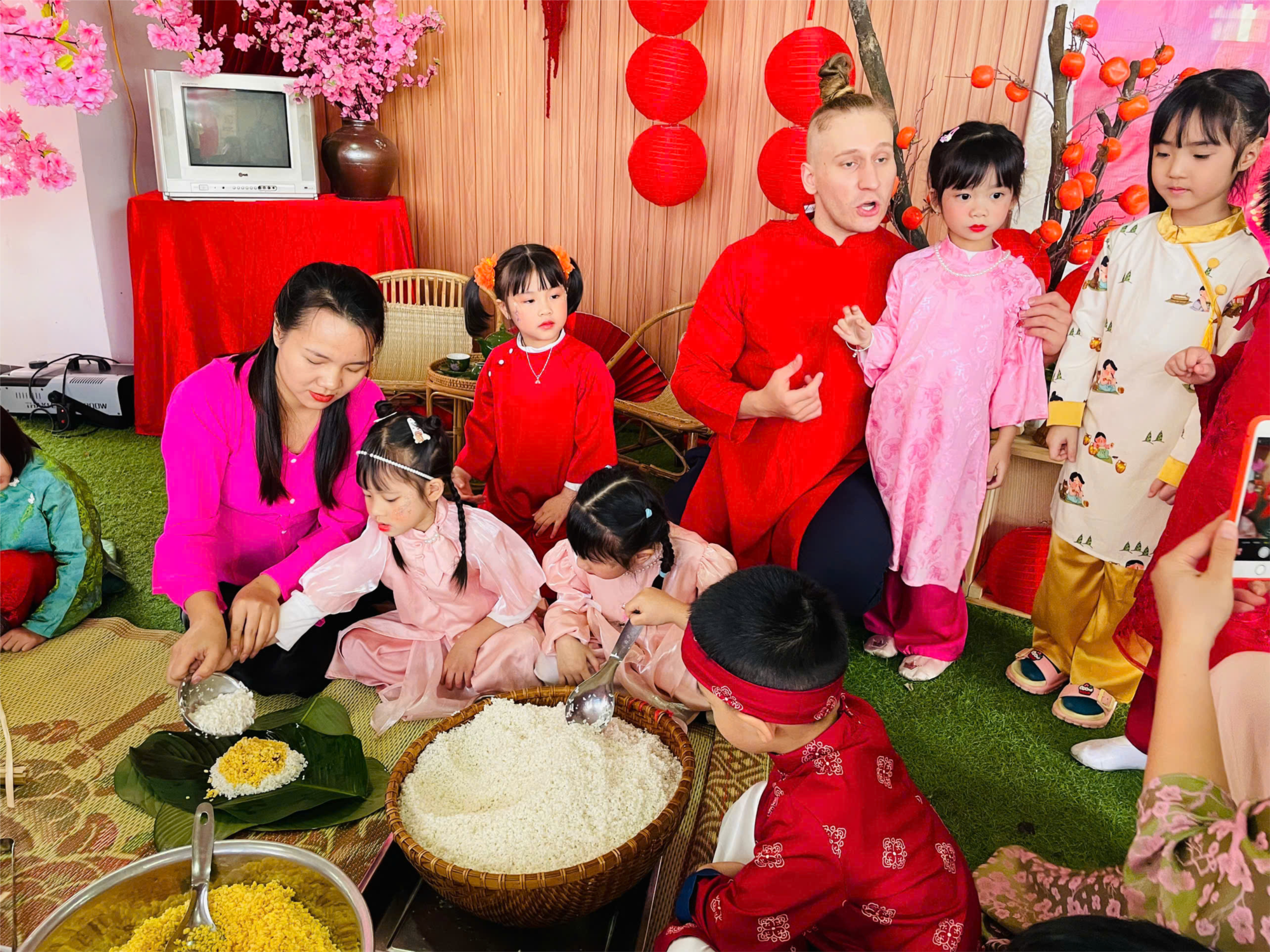 🎋 Rồi lại say mê trải nghiệm gói bánh chưng, sáng tạo chữ thư pháp, ghép tranh, đọc sách và chơi những trò vận động vui nhộn, học qua chơi ở khu công nghệ…