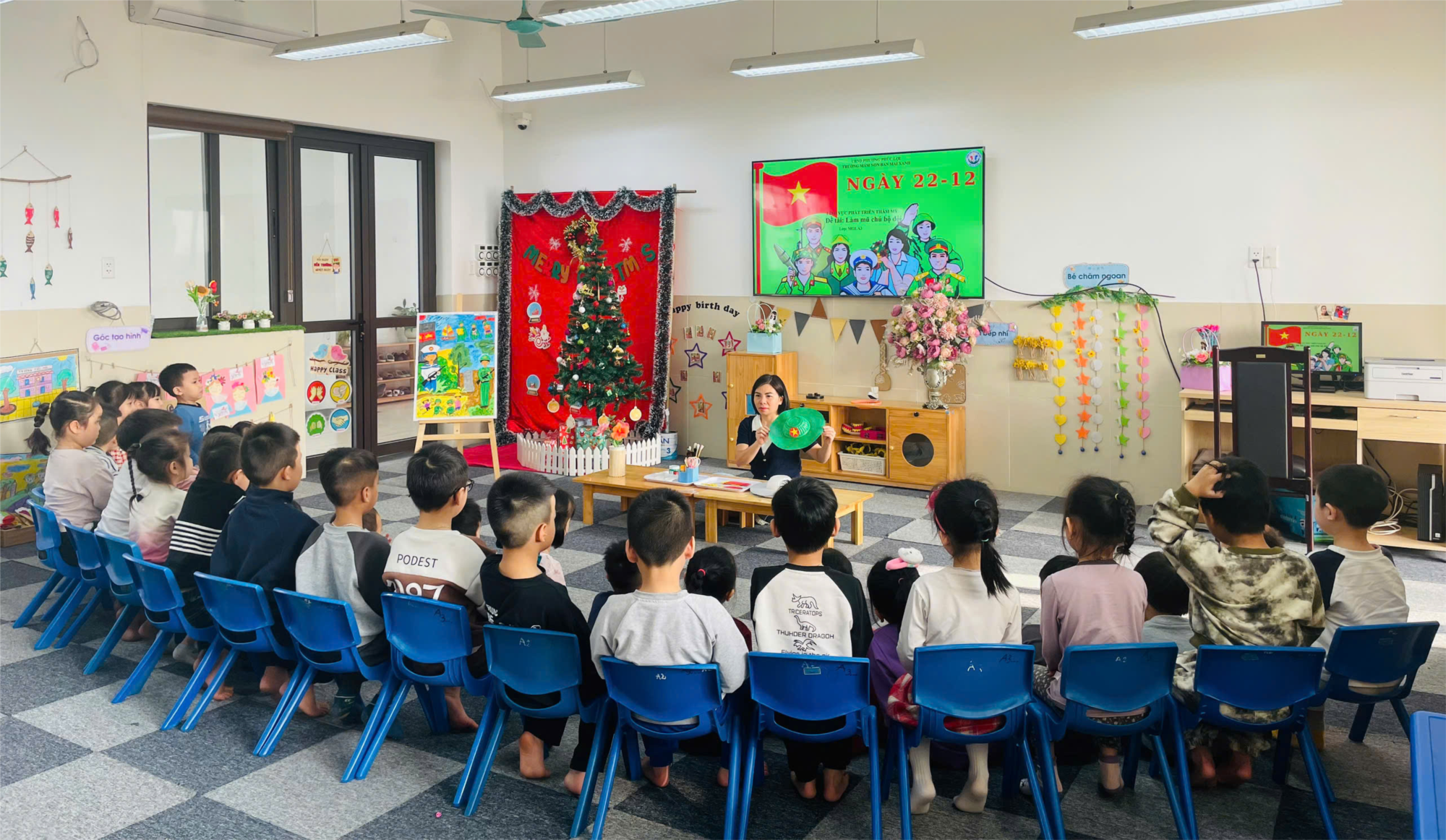 💥Hôm nay các bạn nhỏ lớp MGL A3 đã có một trải nghiệm thật thú vị: Tự tay làm chiếc mũ chú bộ đội thật rực rỡ.