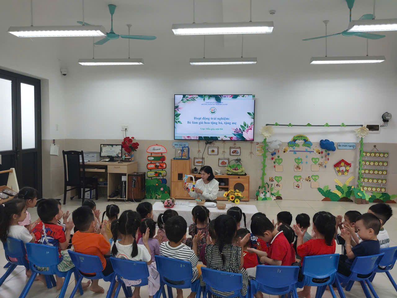 HOẠT ĐỘNG “BÉ LÀM GIỎ HOA TẶNG MẸ, TẶNG BÀ”