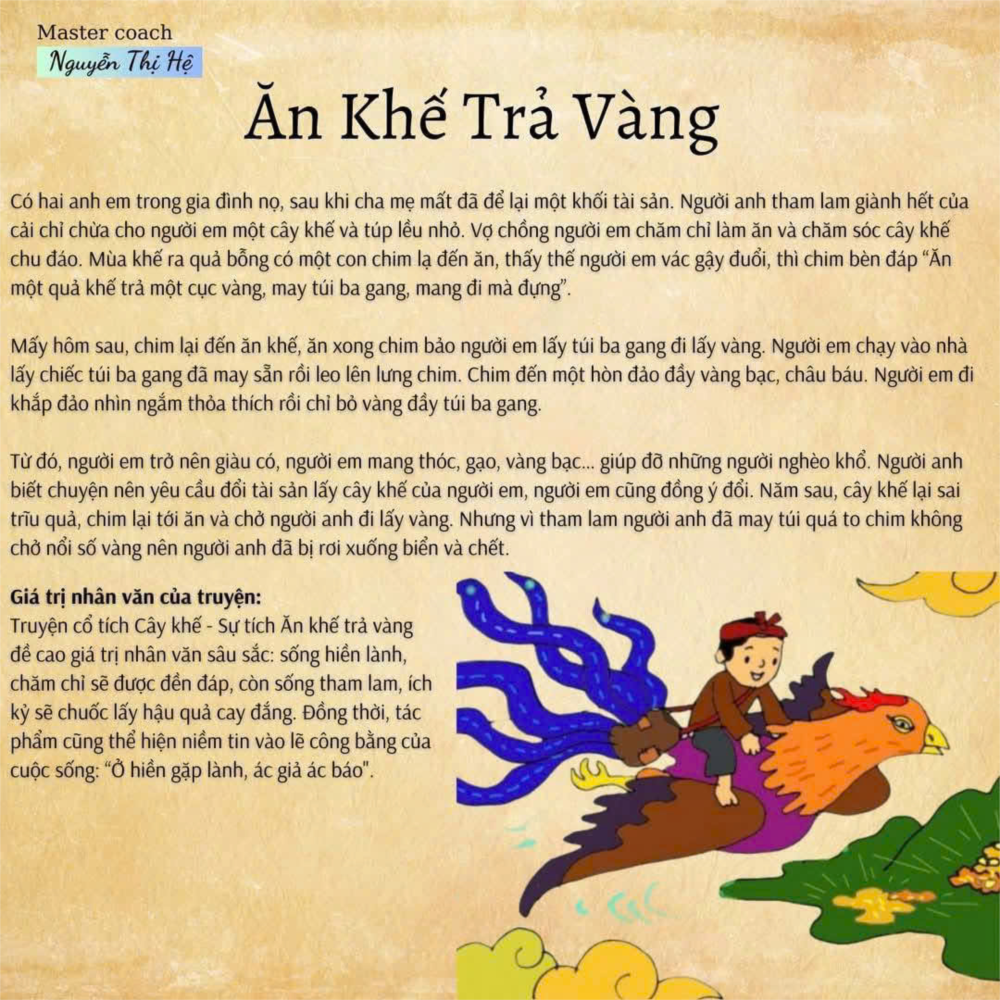 Ngày xưa, có hai anh em nhà kia, sau khi cha mẹ qua đời, người anh chiếm tất cả gia tài, chỉ cho em mỗi một cây khế ở góc vườn. Người em đành nhẫn nhịn, hằng ngày chăm sóc, mong cây sớm ra quả.