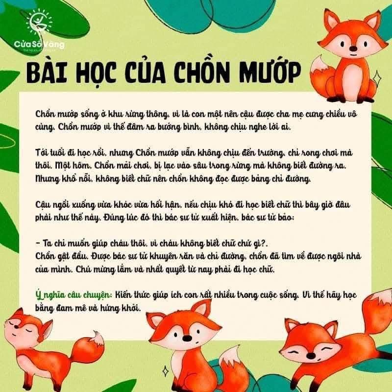 Bác sư tử bảo: “Ta chỉ muốn giúp cháu thôi, vì cháu không biết chữ chứ gì?”. Chồn gật đầu. Được bác Sư Tử khuyên răn và chỉ đường, Chồn đã tìm về được ngôi nhà của mình. Chú mừng lắm và nhất quyết từ nay phải đi học”