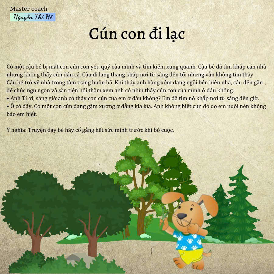 – Anh Tí ơi, sáng giờ anh có thấy con cún của em ở đâu không? Em đã tìm nó khắp nơi từ sáng đến giờ.