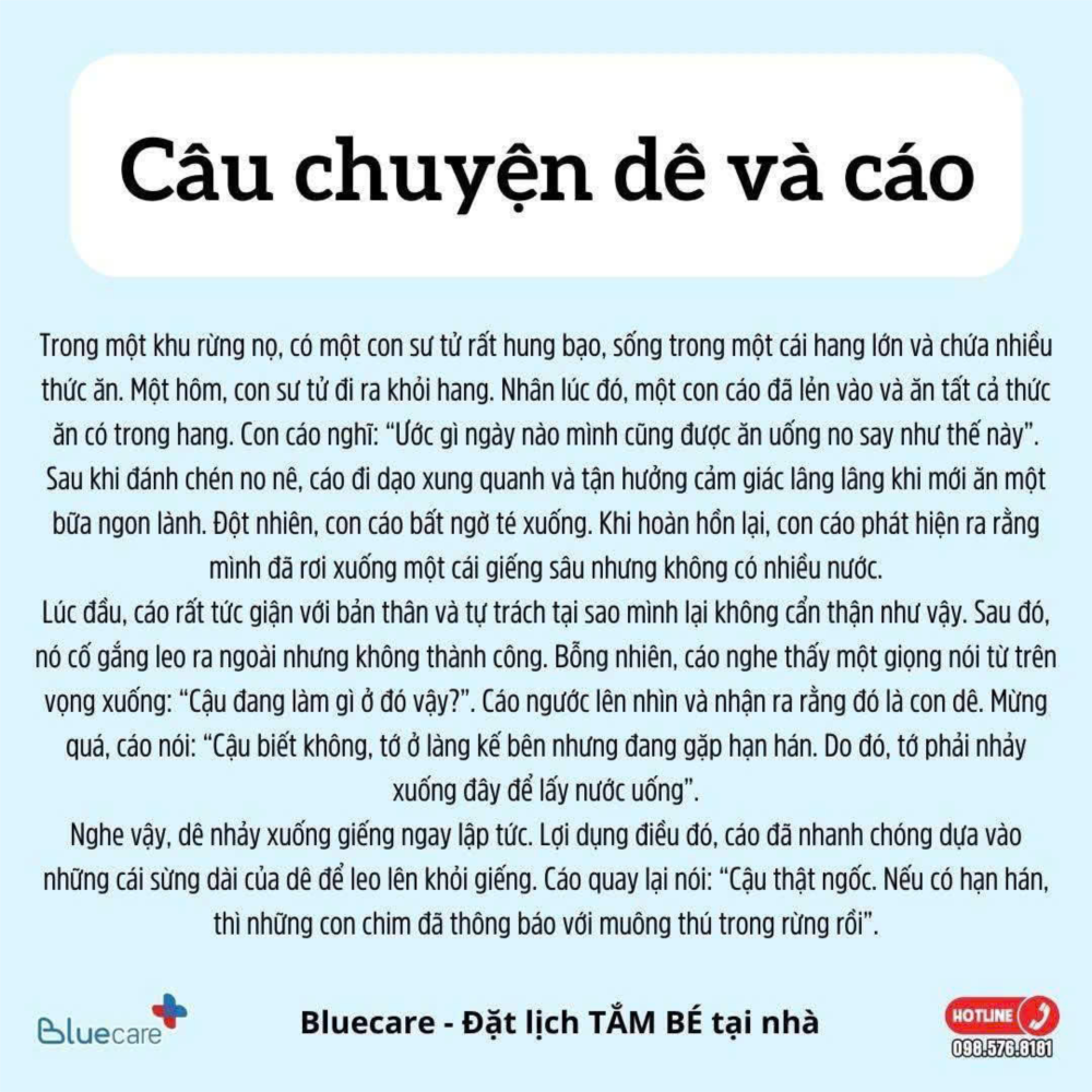“Cháu xin ông, ông Cáo,” dê con run rẩy nói, “cháu biết là ông sẽ ăn thịt cháu. Nhưng trước khi ăn, xin ông hãy thổi kèn lên giúp cháu, vì cháu muốn được nhảy múa cho vui vẻ trước khi chết.”