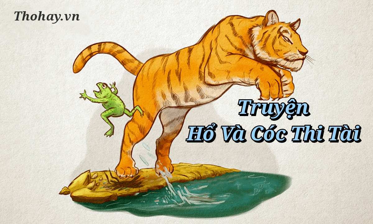 Ngày xưa, các loài vật đều biết nói và hiểu tiếng của nhau. Chúng cùng sống với nhau trong một ngôi rừng và rất yêu thương nhau. Cùng sống trong một khu rừng có một con Hổ rất hung ác. Hổ thường hay bắt nạt các con vật khác nên các con vật vừa ghét vừa sợ Hổ xám. Một hôm, Hổ đi kiếm mồi mãi mà không được, nó vừa đói, vừa mệt, nó nằm im để tiếp tục rình mối. Bỗng Hổ nhìn thấy một chú Cóc xanh ngồi chồm hổm ở bờ suối. Hổ nhìn Cóc chầm chầm và quát to: Cóc kia, tao sẽ ăn thịt mày! Nghe Hổ quát, Cóc rất lo sợ nhưng cố giữ bình tĩnh và Cóc nghĩ ra một mẹo. Cóc liền nói: Anh đừng cậy to lớn mà bắt nạt tôi, có giỏi anh hãy thi tài với tôi xem ai hơn nào. Nghe Cóc nói vậy, Hổ tức quá, nó gầm lên: Được, nếu mày muốn thì thi, nếu mày thua tao sẽ ăn thịt mày ngay lập tức! Cóc nói: Bây giờ tôi và anh thi nhảy qua suối, ai nhảy qua trước thì người đó sẽ thắng cuộc. Nghe Cóc nói vậy, Hổ bằng lòng ngay, nó bảo: Mày bé tao cho mày nhảy trước. Cóc vội đáp: không anh lớn hơn anh cứ nhảy trước đi, em bé em sẽ nhảy sau. Hổ đồng ý và nó vươn người lao vút qua bờ suối bên kia. Nhưng lạ thay, vừa mới đến nơi Hổ đã thấy Cóc ngồi phía trước, giương đôi mắt lồi nhìn nó và cười.