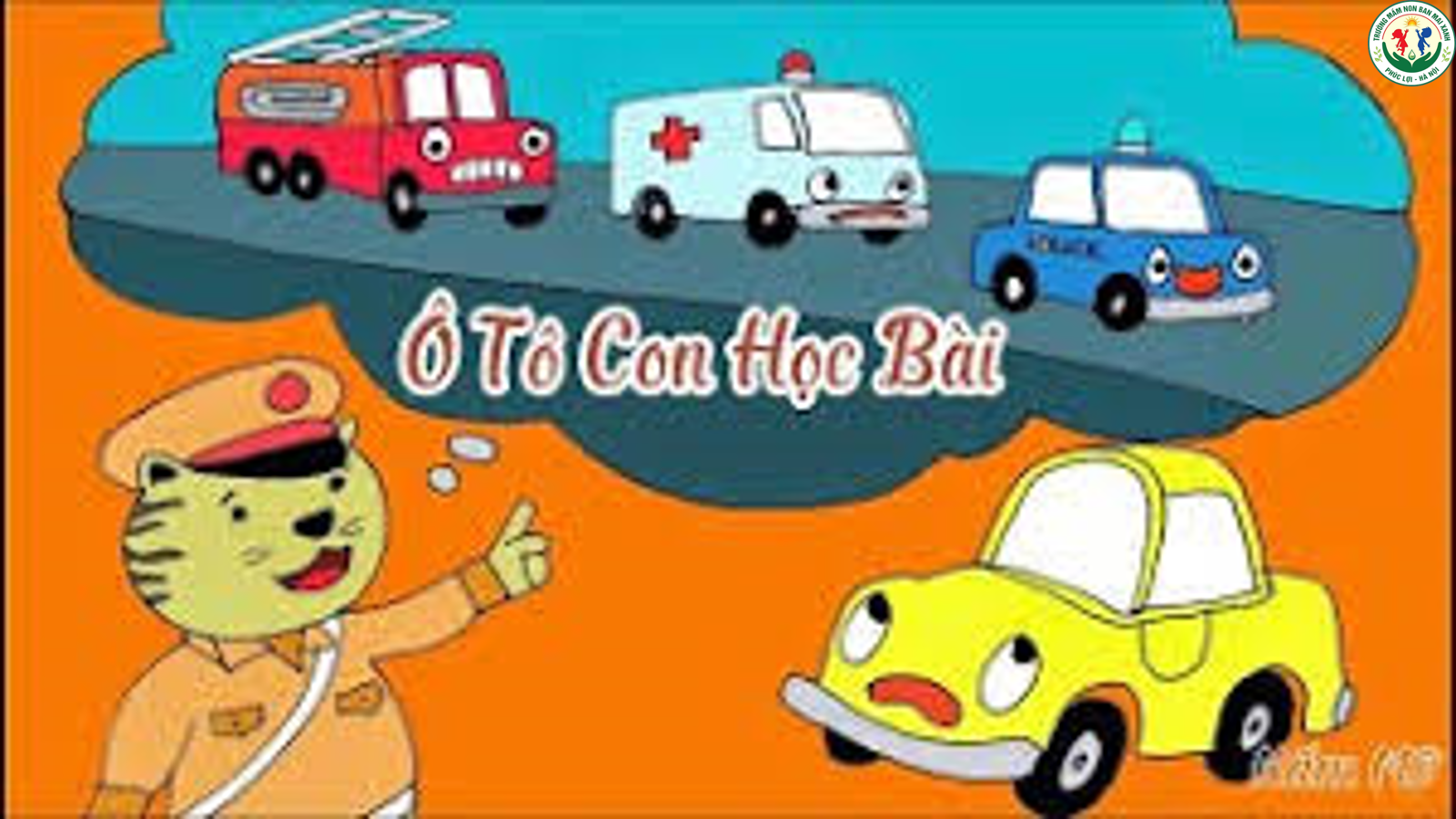 Hôm nay các ô tô trong xưởng phải dậy sớm nghe chú cảnh sát Mèo giảng về luật giao thông . “ Dậy thôi,dậy học bài thôi!”.Chú cảnh sát vẽ lên bảng những ký hiệu như cột đèn giao thông,đường một chiều,rẽ trái,rẽ phải....Chú dặn các ô tô phải nhớ kỹ đèn đỏ dững lại,đèn xanh mới được đi,không được đi vào đường một chiều.ô tô con nghe vậy chỉ cười,cho là quá dễ,không cần phải học,nên ngáp ngắn ngáp dài rồi nhắm mắt ngủ