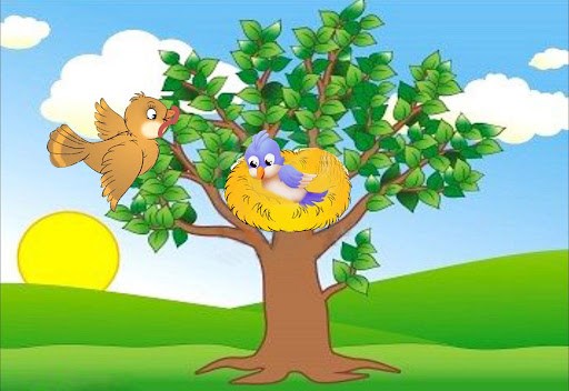Một chú Hươu cao cổ vừa bước đến, Sẻ con càng hoảng sợ, kêu khóc rối rít: