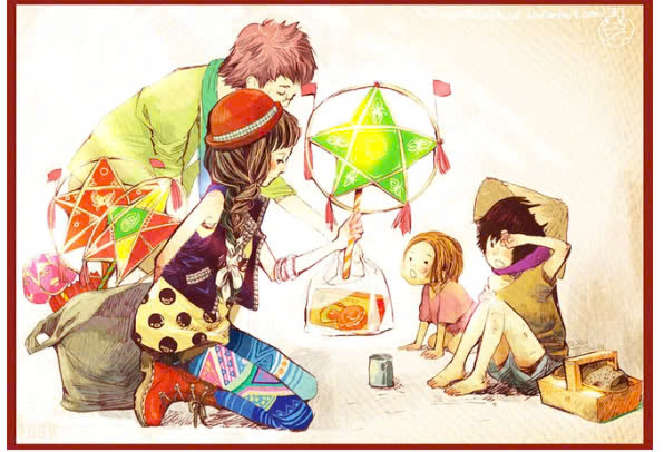 Từ đó, cứ đêm Rằm Trung thu, nhớ đến các bạn Sao, lũ trẻ đã lấy tre nứa, cành cây làm hình dáng những ngôi sao và rước đi cùng chơi. Đó là những chiếc đèn ông sao đơn giản đầu tiên. Chúng phát triển theo thời gian và tồn tại đến bây giờ.